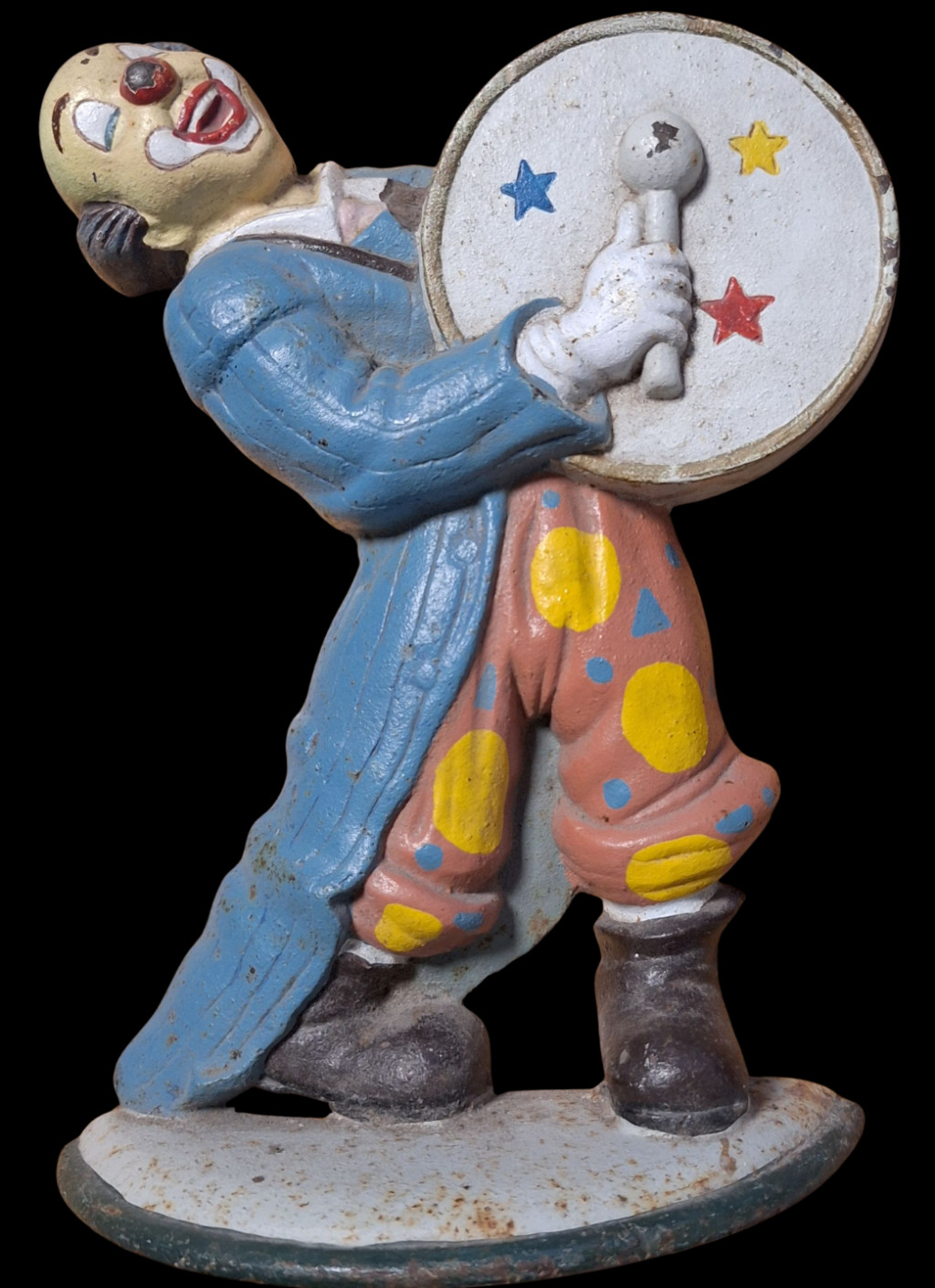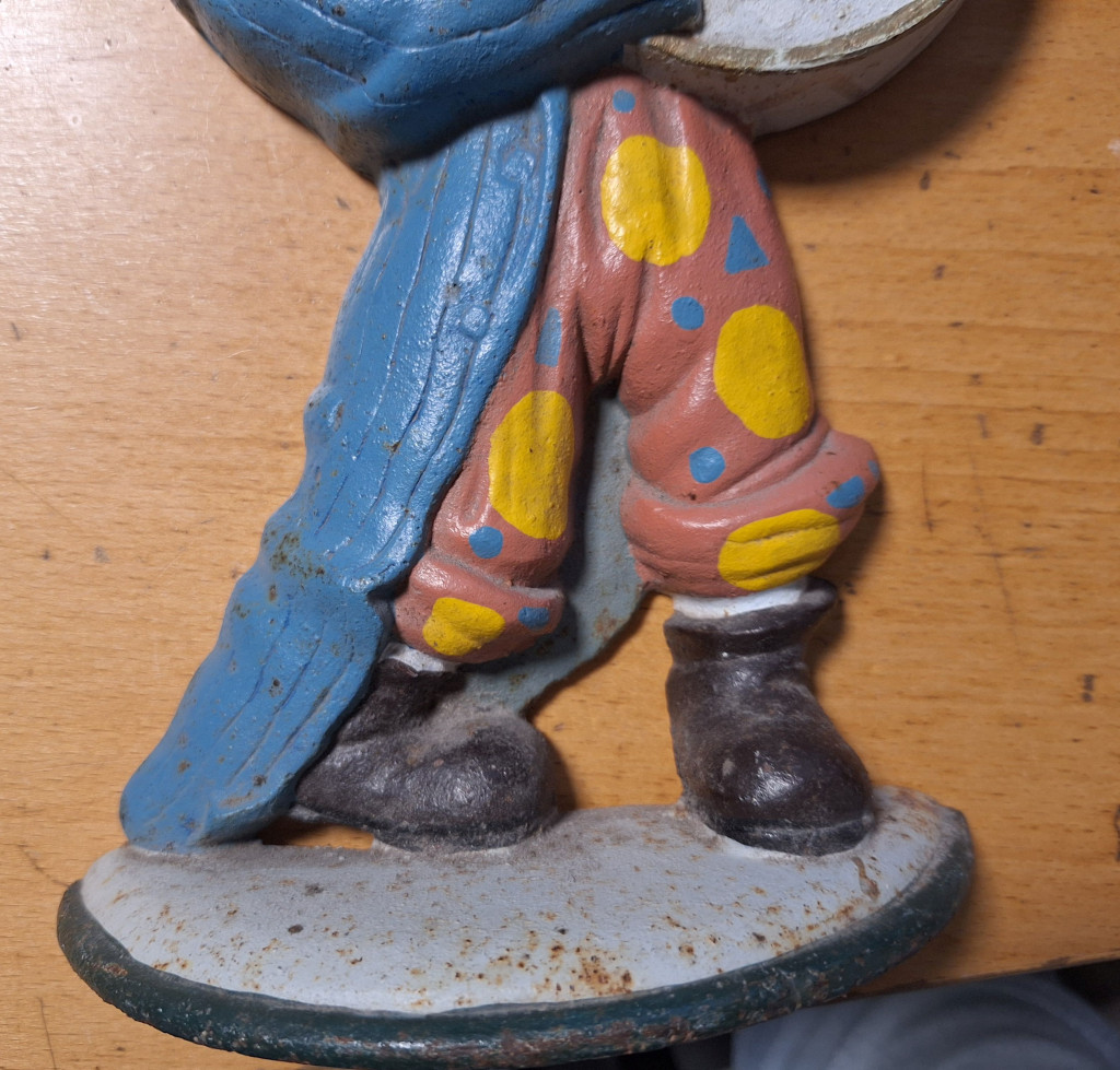 Fém, öntöttvas Vidámparki vagy bohóc társulat Bohócot ábrázoló kelléke 1930-1950-es évek, ritka
