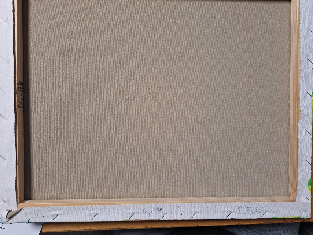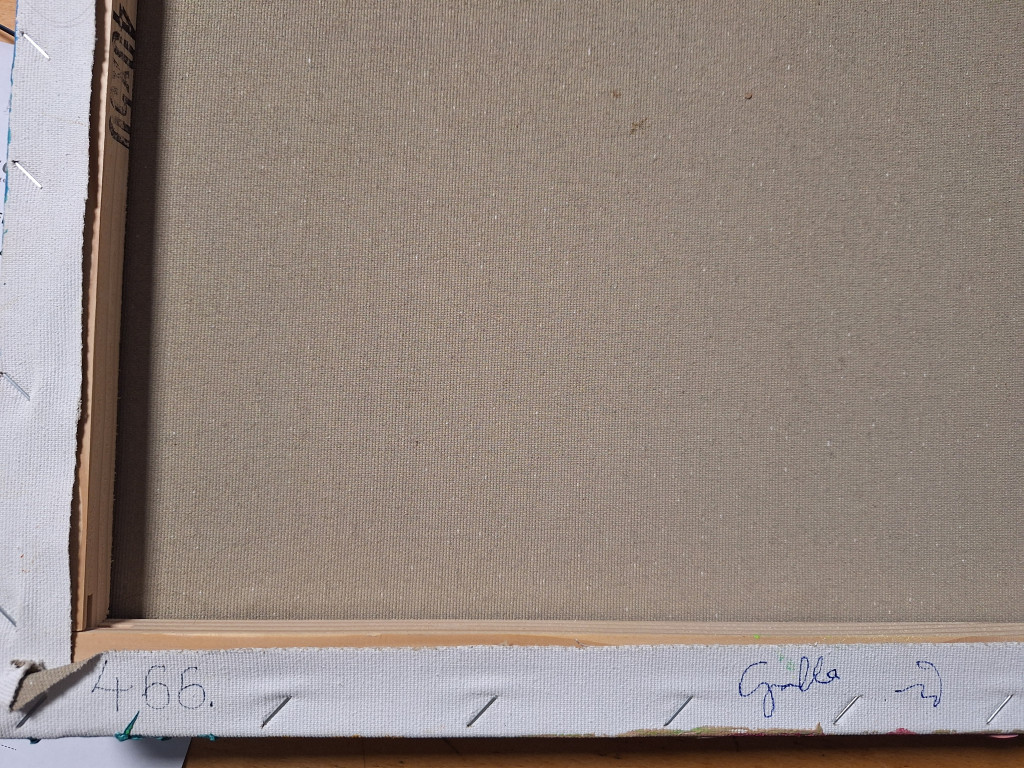 Hátoldalon aláírva, számozva, dátumozva. (A számozás azt jelenti, ahogy a művész úr sorrendben készítette a képeit. Az elsőn 1-es szám szerepel, a háromszázadikon 300. Egyfajta leltári szám.)