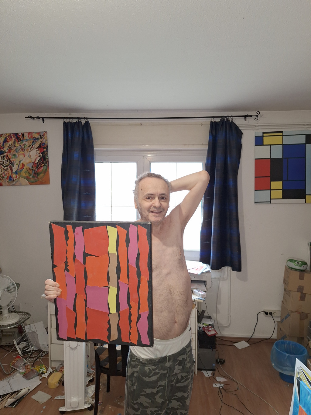 Galla Miklós saját absztrakt festménye, alkotása : "Hormon Bonbon!" aláírt. Vászon, ráragasztott, vágott, színes papírdarabokkal vegyes technika. 50 x 39 cm. Keretben! Hátoldalon aláírva.Videós ajánlóért katt ide!Az alkotást az alkotó engedélyével értékesítjük!A fotó az alkotó hozzájárulásával került kihelyezésre, kizárólag a festményhez kapcsolódó bemutatási célból.Engedély nélküli másolása, felhasználása vagy terjesztése jogsértő.