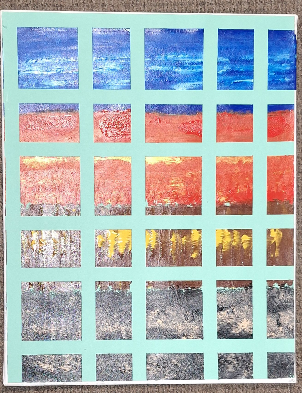 Galla Miklós saját absztrakt alkotása : "Koravén Paraván" aláírt. Vászon alapon, papíron, akril. 50 x 39 cm. Keretben!