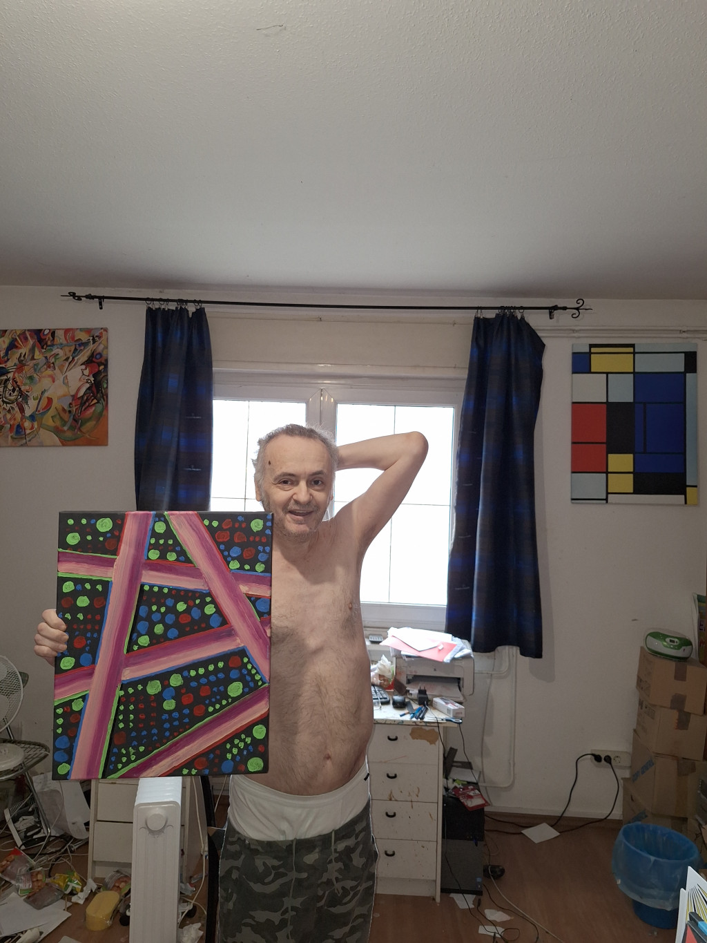 Galla Miklós saját absztrakt festménye : "Kicsúszott alólam a tulaj!" aláírt. Vászon, akril és vegyes technika 50 x 39 cm. (Korábban egy másik festményét nevezte így el, de most átnevezte és ez a kép kapta ezt a címet.)Keretben! Hátoldalon aláírva, dátumozva, sorszámozva.(A számozás azt jelenti, ahogy a művész úr sorrendben készítette a képeit. Az elsőn 1-es szám szerepel, a háromszázadikon 300. Egyfajta leltári szám.)Videós ajánlóért katt ide!Az alkotást az alkotó engedélyével értékesítjük!A fotó az alkotó hozzájárulásával került kihelyezésre, kizárólag a festményhez kapcsolódó bemutatási célból.Engedély nélküli másolása, felhasználása vagy terjesztése jogsértő.