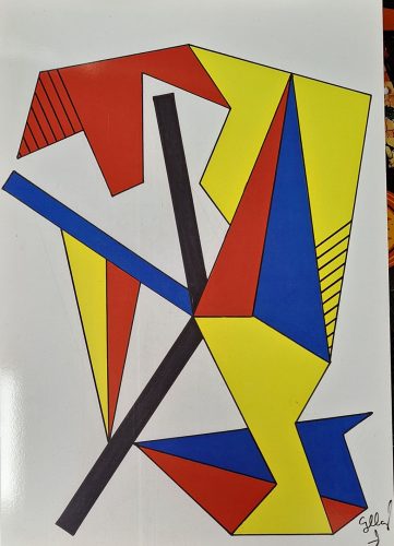 Galla Miklós saját absztrakt festményének nagyméretű, aláírt lenyomata : "Gallaxis" aláírt 42 x 59 cm