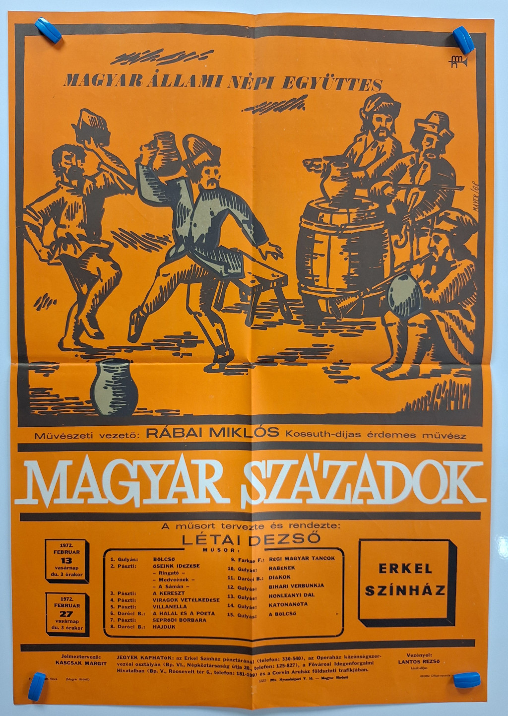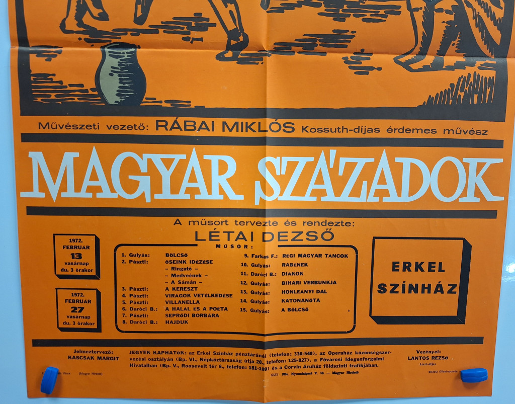 Magyar századok (Magyar Állami Népi Együttes) fellépés plakát Erkel színház (Létai Dezső) 1968 (Mayer jelzéssel)