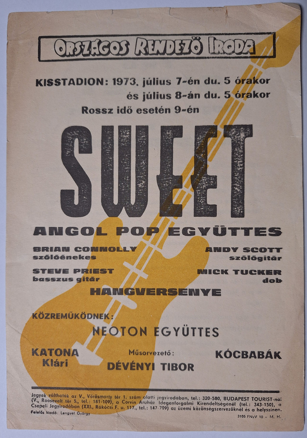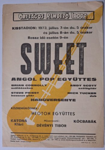 ORI. Kisstadion Villamosplakát (1973.Júl.7) Sweet (Brian Connoly,Andy Scott,Steve Priest,Mick Tucker),Neoton,Katona K.,Kócbabák,Dévényi