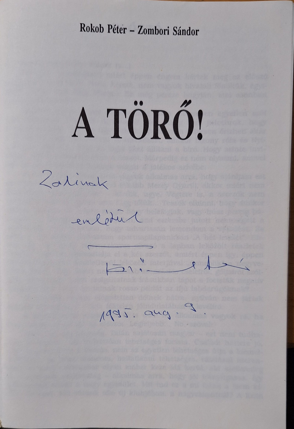 Rokob P. - Zombori P. - A Törő! Törőcsik András által dedikált könyv 1995