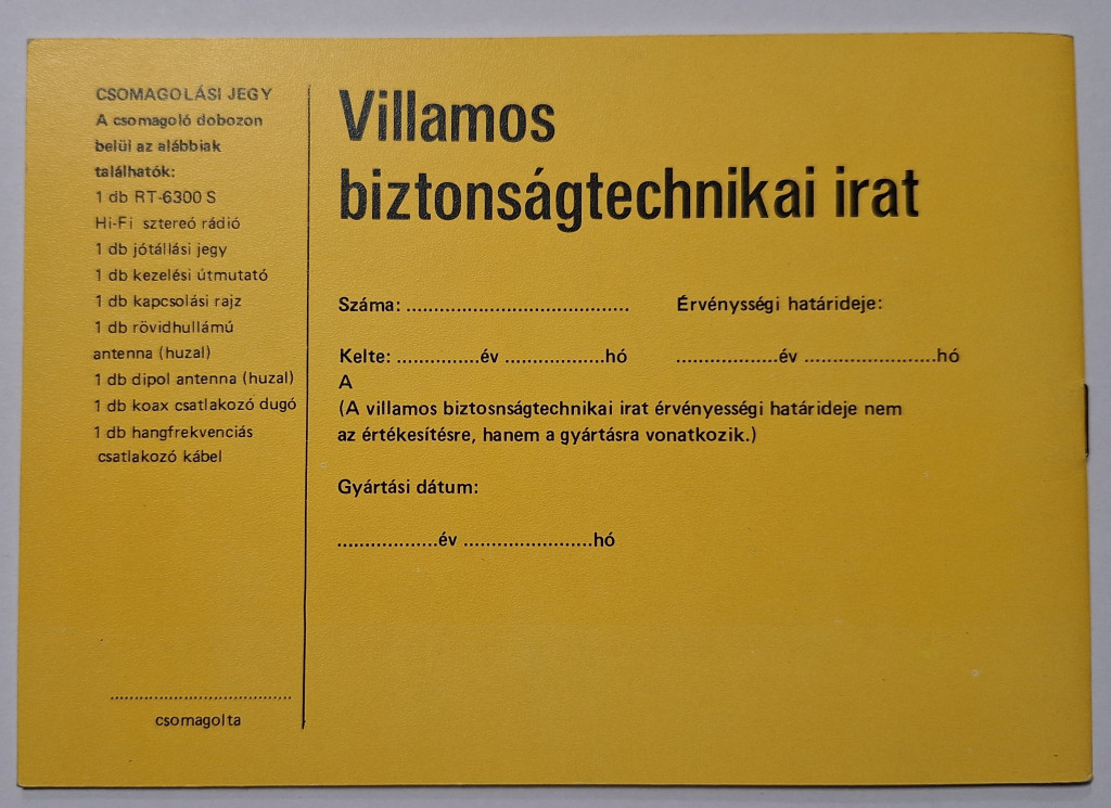 Videoton RT 6300 S Hi-Fi sztereó rádió tuner kezelési útmutató 1981