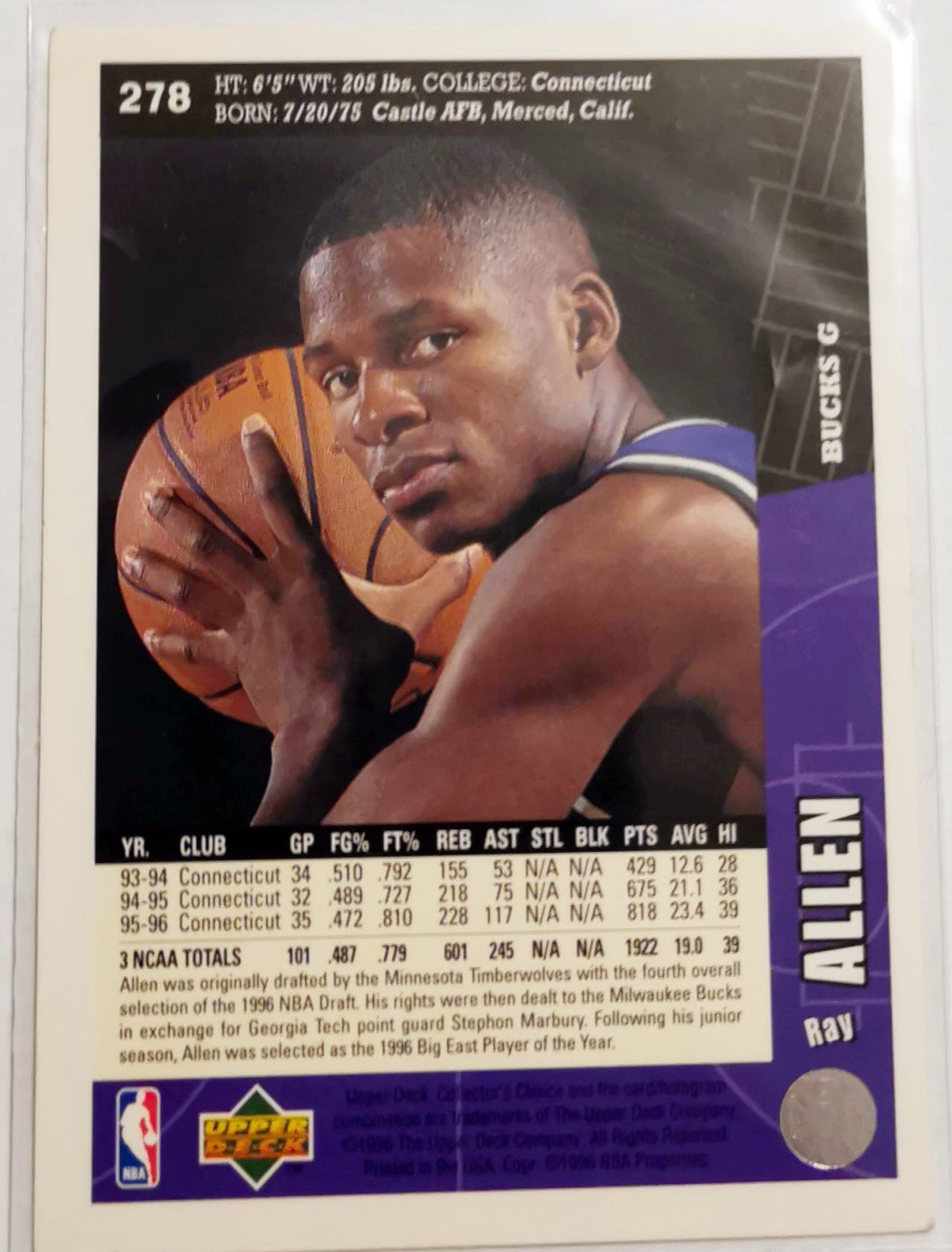 Ray Allen Rookie RC Upper Deck Collector's Choice 1996 kosárlabda kártya