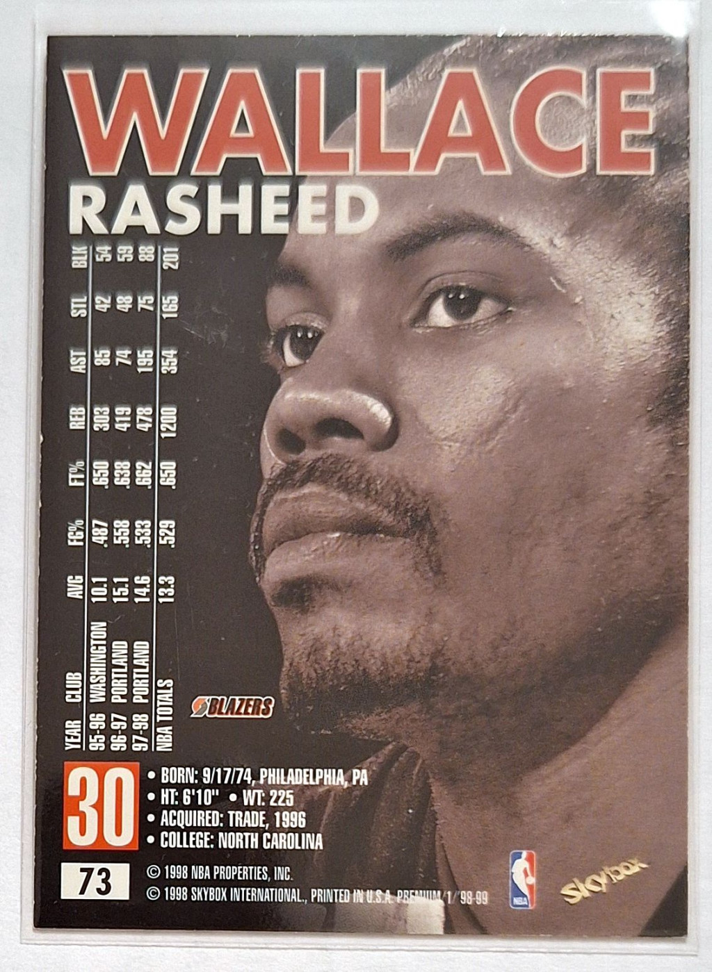 Rasheed Wallace SkyBox Premium (1998-1999) kosárlabda kártya