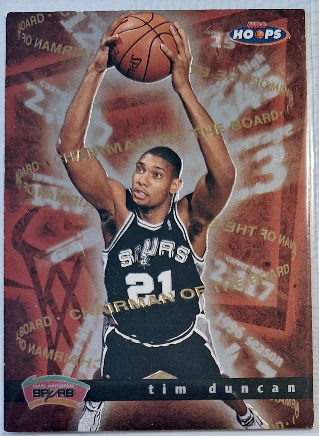 Tim Duncan NBA Hoops 1998 kosárlabdakártya Chairman of the board RC lap.