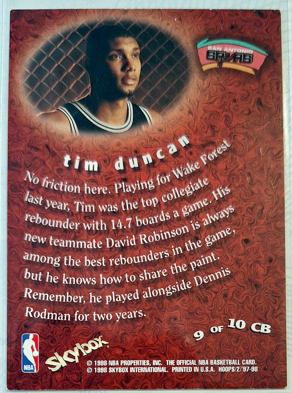 Tim Duncan NBA Hoops 1998 kosárlabdakártya Chairman of the board RC lap