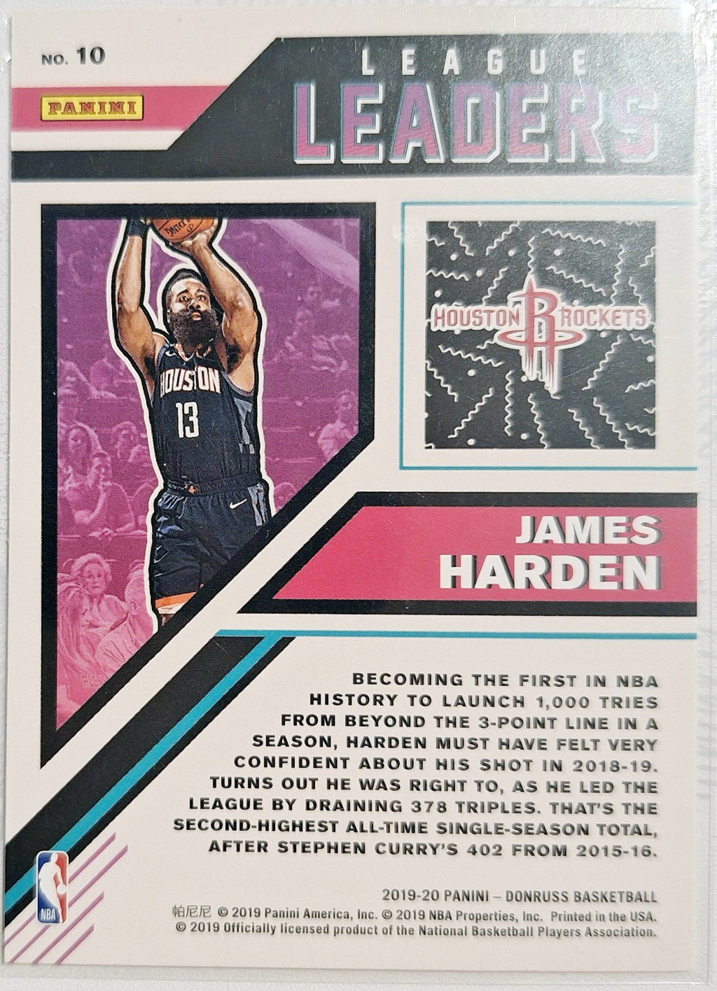 James Harden Donruss League Leaders 2019 NBA kosárlabdakártya