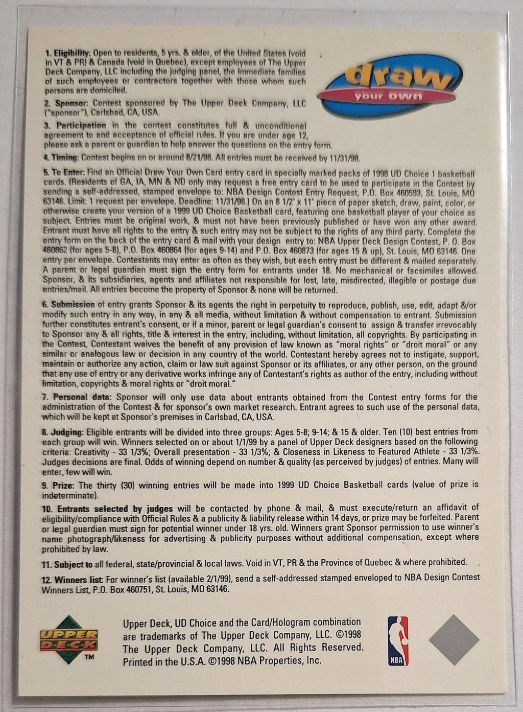 Michael Jordan Upper Deck Draw Your own card 1998 NBA kosárlabdakártya
