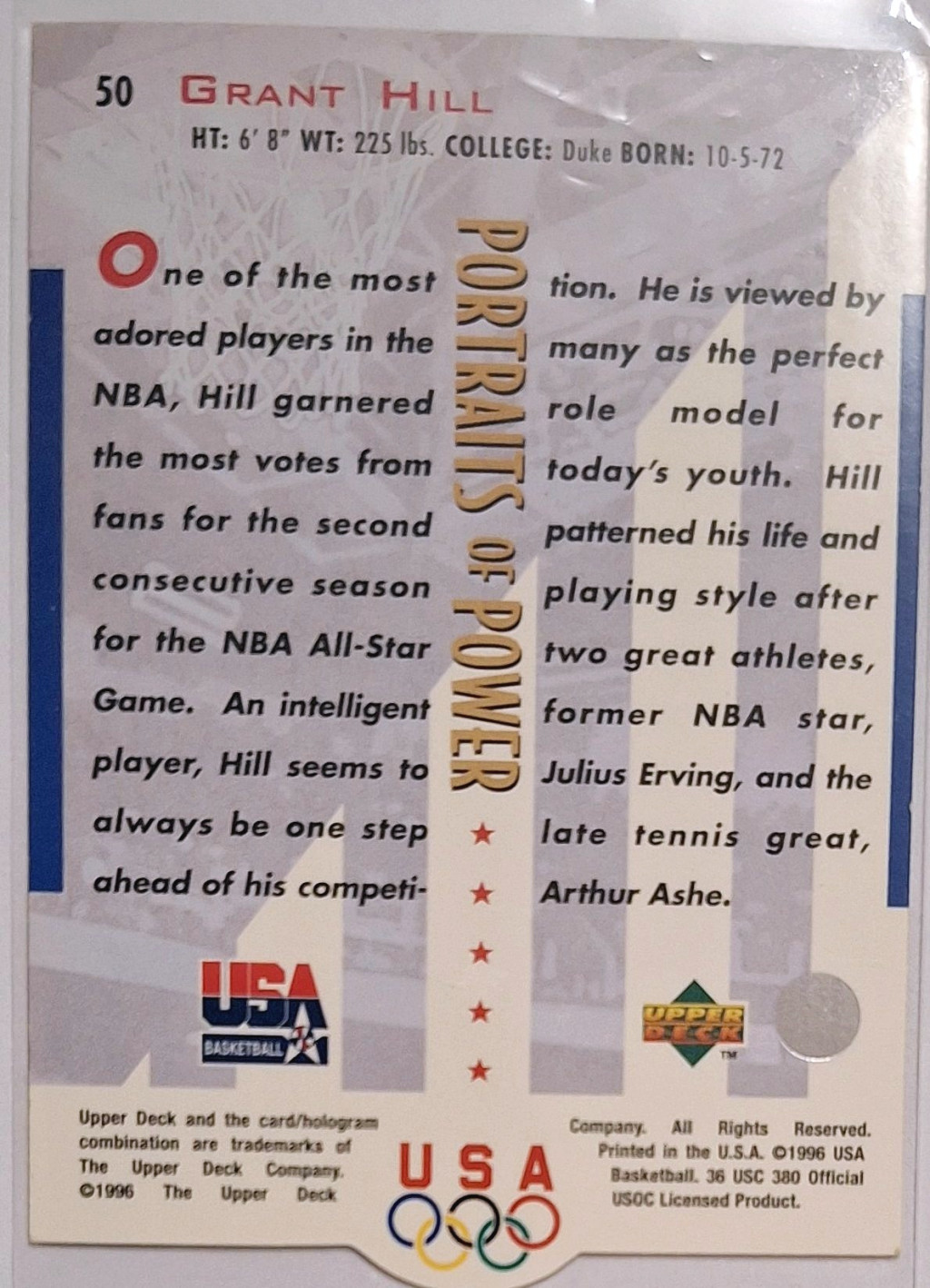 Grant Hill NBA Portraits of Power Usa Basketball 1996 kosárlabdakártya