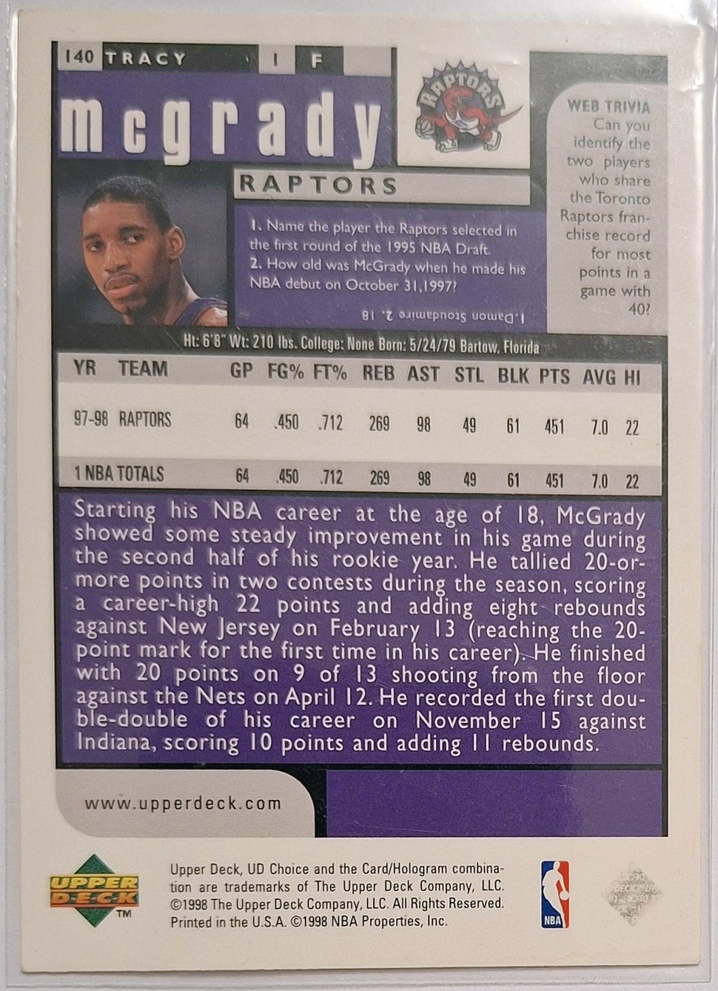 Tracy Mcgrady NBA UD Choice 1998 kosárlabdakártya