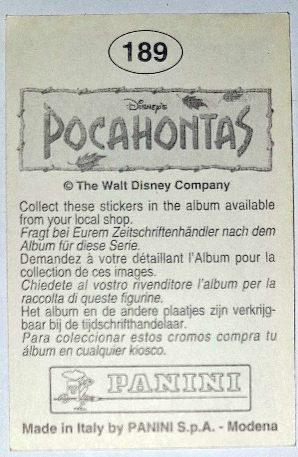 Pocahontas rajzfilm eredeti PANINI 1995 beragasztós matrica (189)