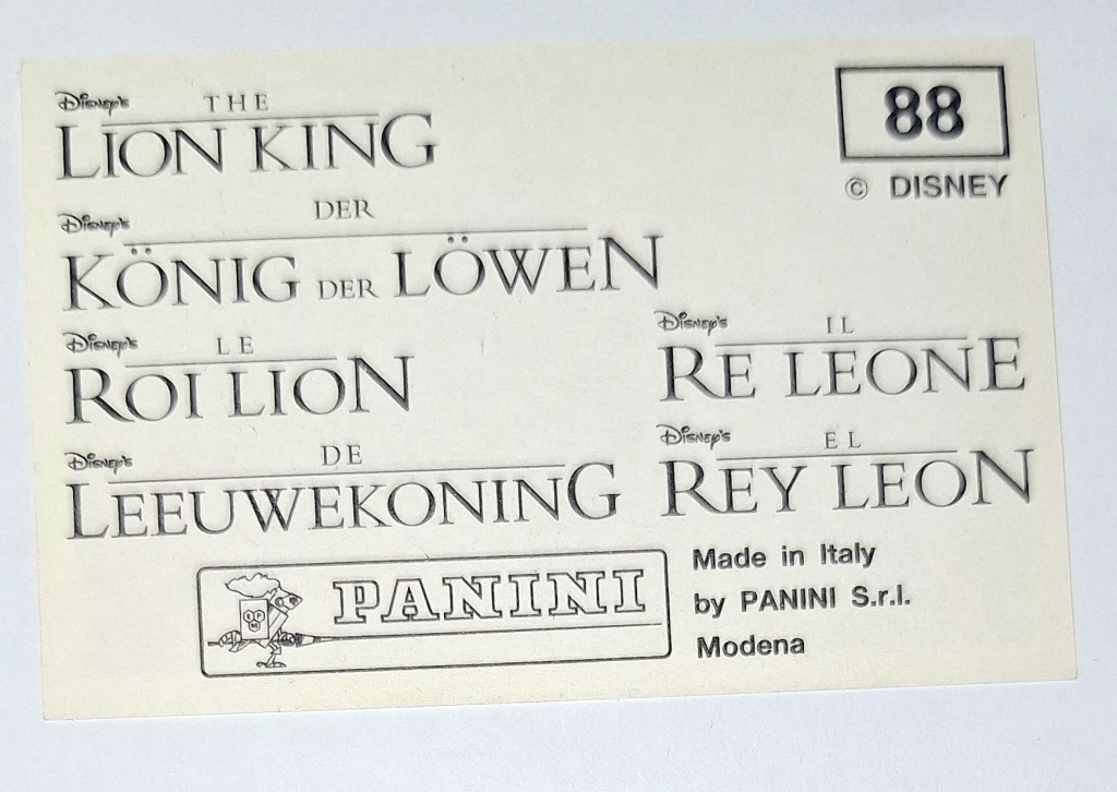 Oroszlánkirály (Lion King) rajzfilm eredeti PANINI 1994 beragasztós matrica (88)