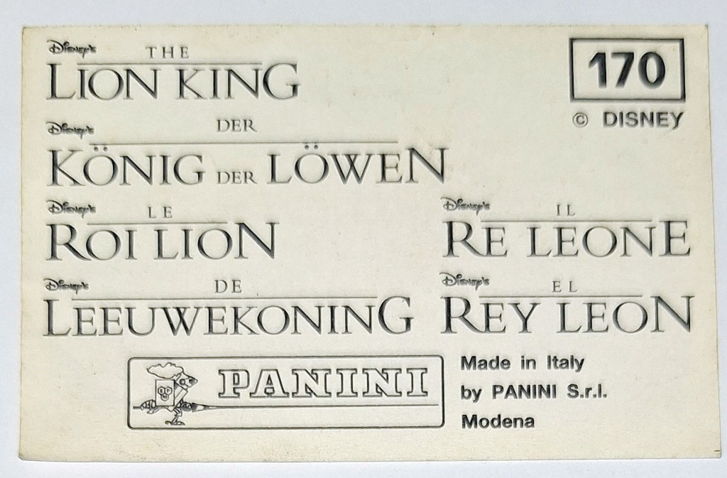 Oroszlánkirály (Lion King) rajzfilm eredeti PANINI 1994 beragasztós matrica (170)