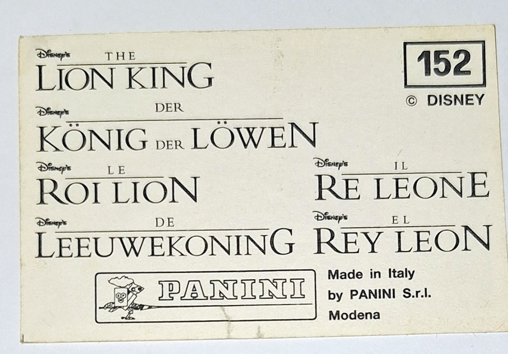Oroszlánkirály (Lion King) rajzfilm eredeti PANINI 1994 beragasztós matrica (152)