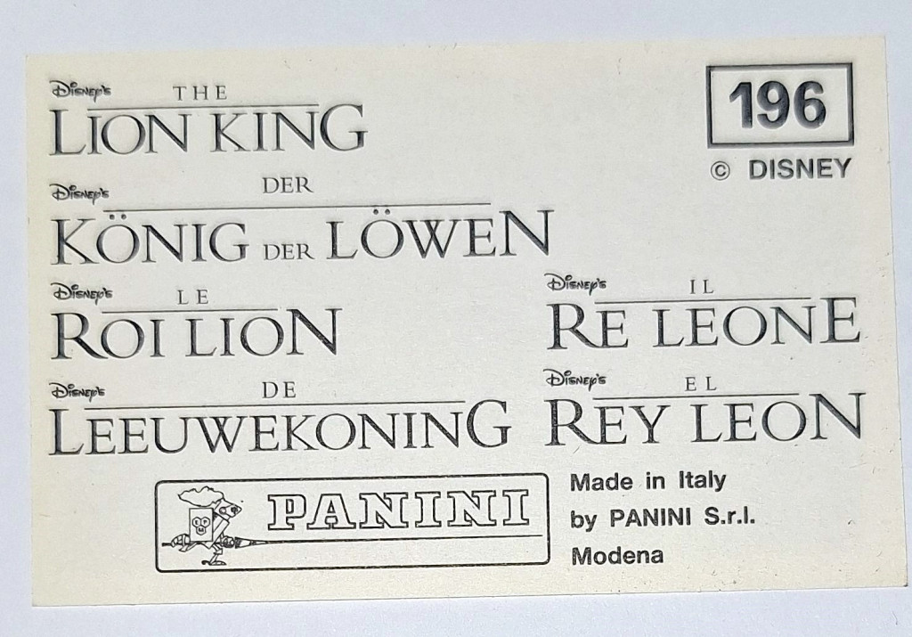 Oroszlánkirály (Lion King) rajzfilm eredeti PANINI 1994 beragasztós matrica (196)