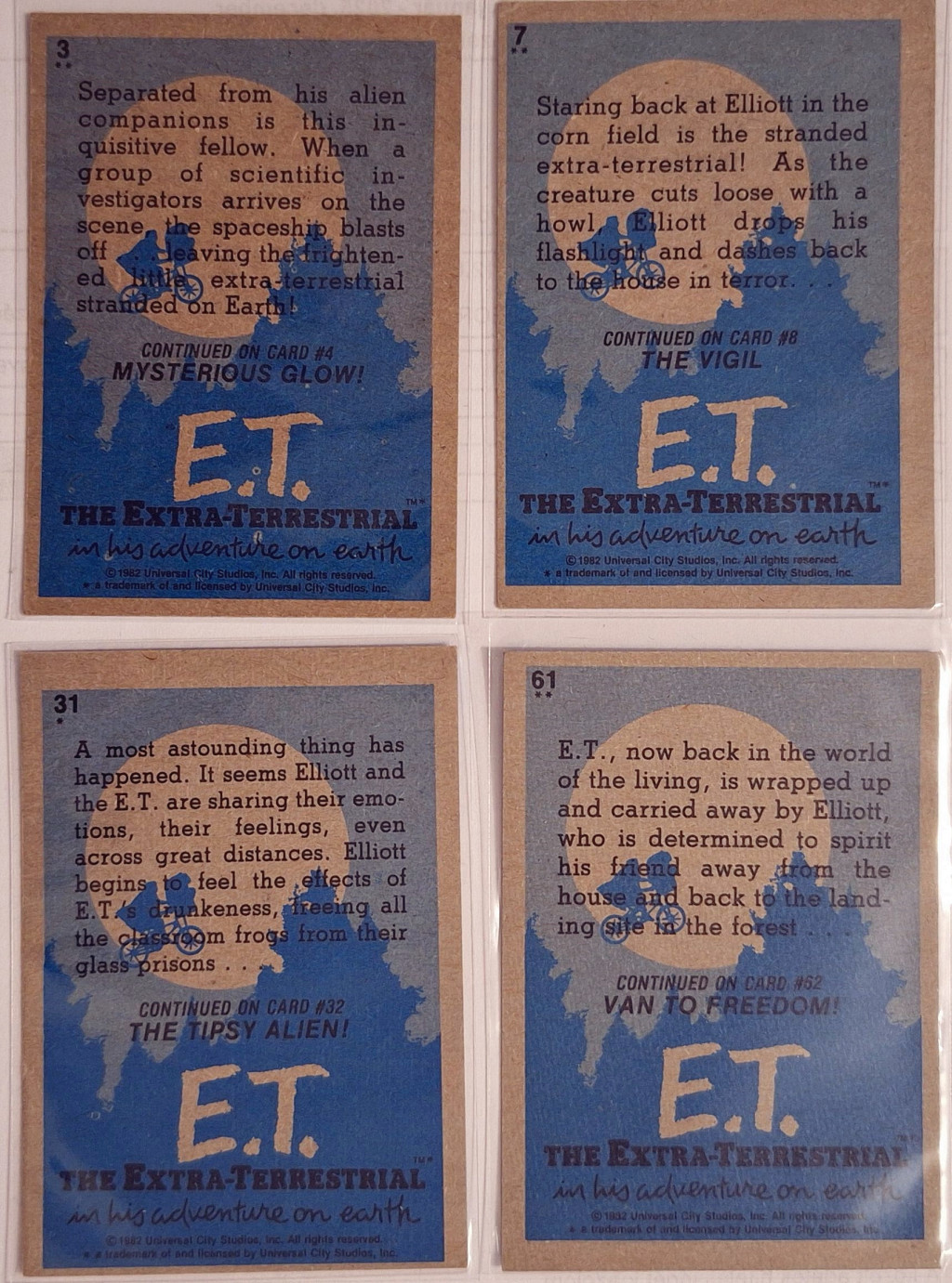 E.T. A földönkívüli 4 db. eredeti 1982-es Universal Studios kereskedelmi kártya egyben (1.)